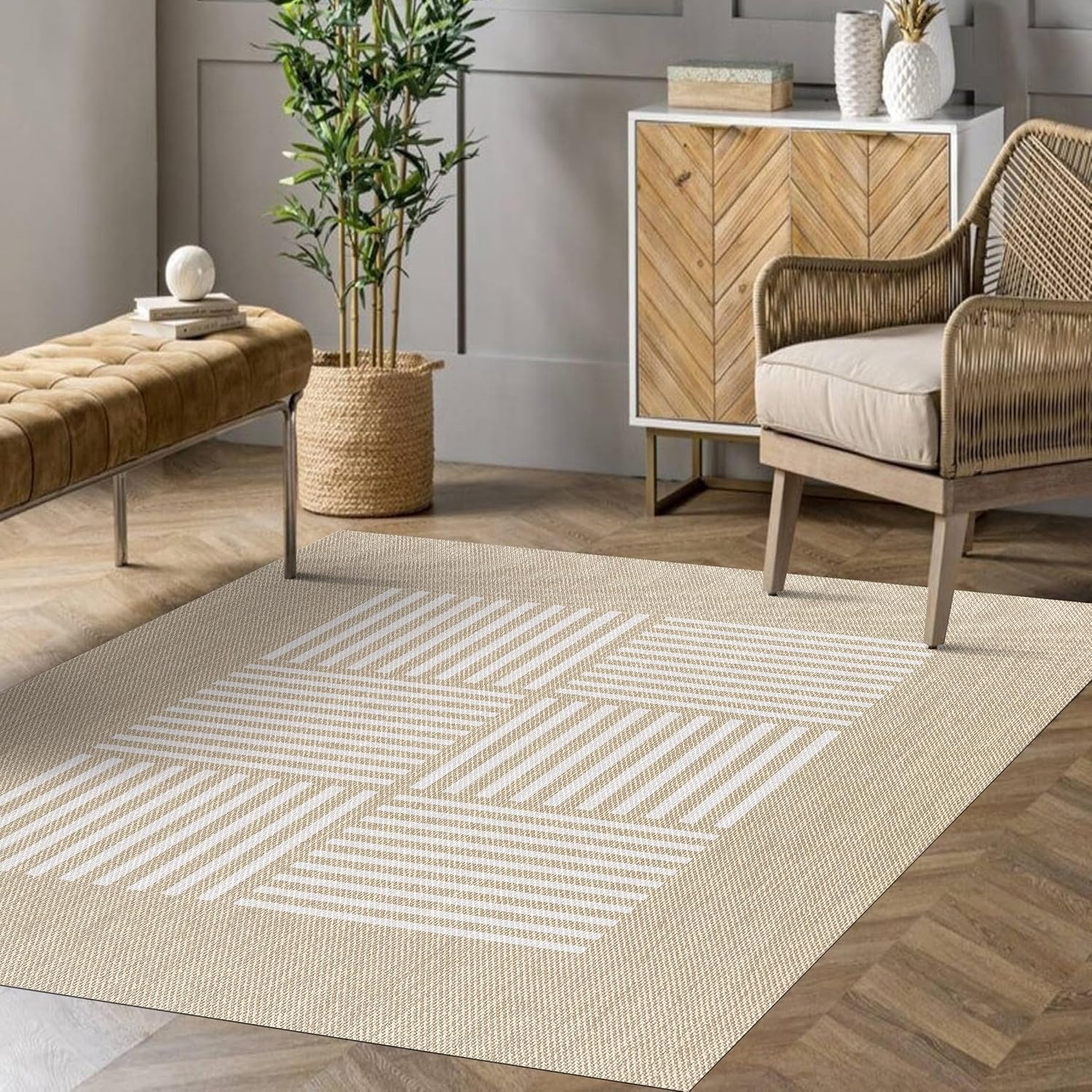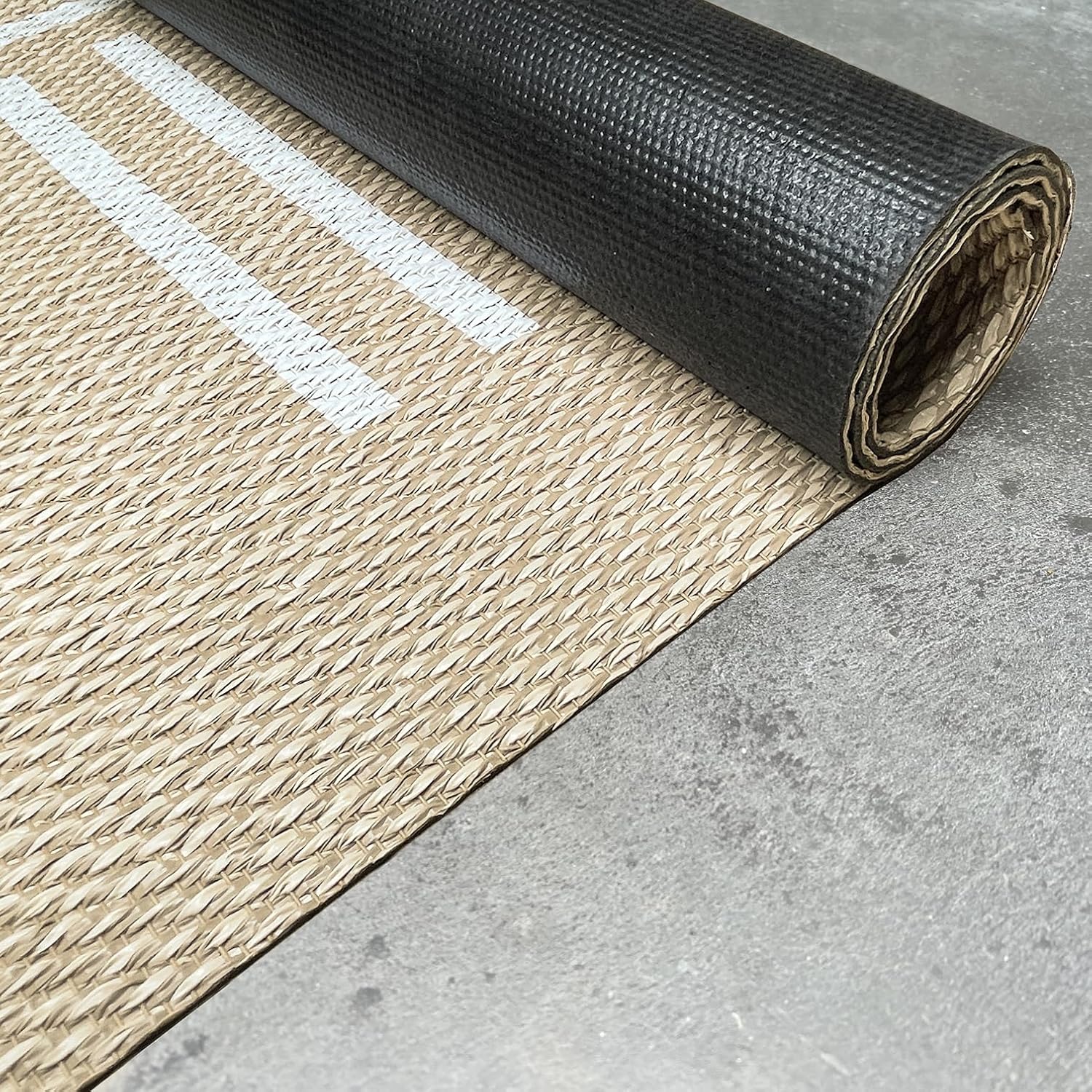 Alfombra vinílica de tejido trenzado Premium de Alta gama Lavable Antideslizante Alfombras vinílicas resistentes para salón cocina habitación baño pasillo exterior STORESDECO Líneas blancas 160×230 cm