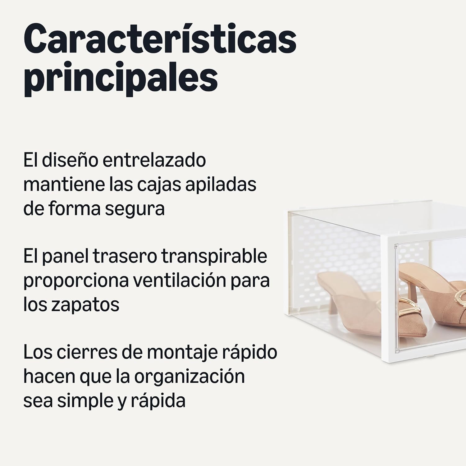 - Montaje rápido con cierres de bloqueo de cajas de almacenamiento de zapatos apilables para mantener las cajas en su lugar