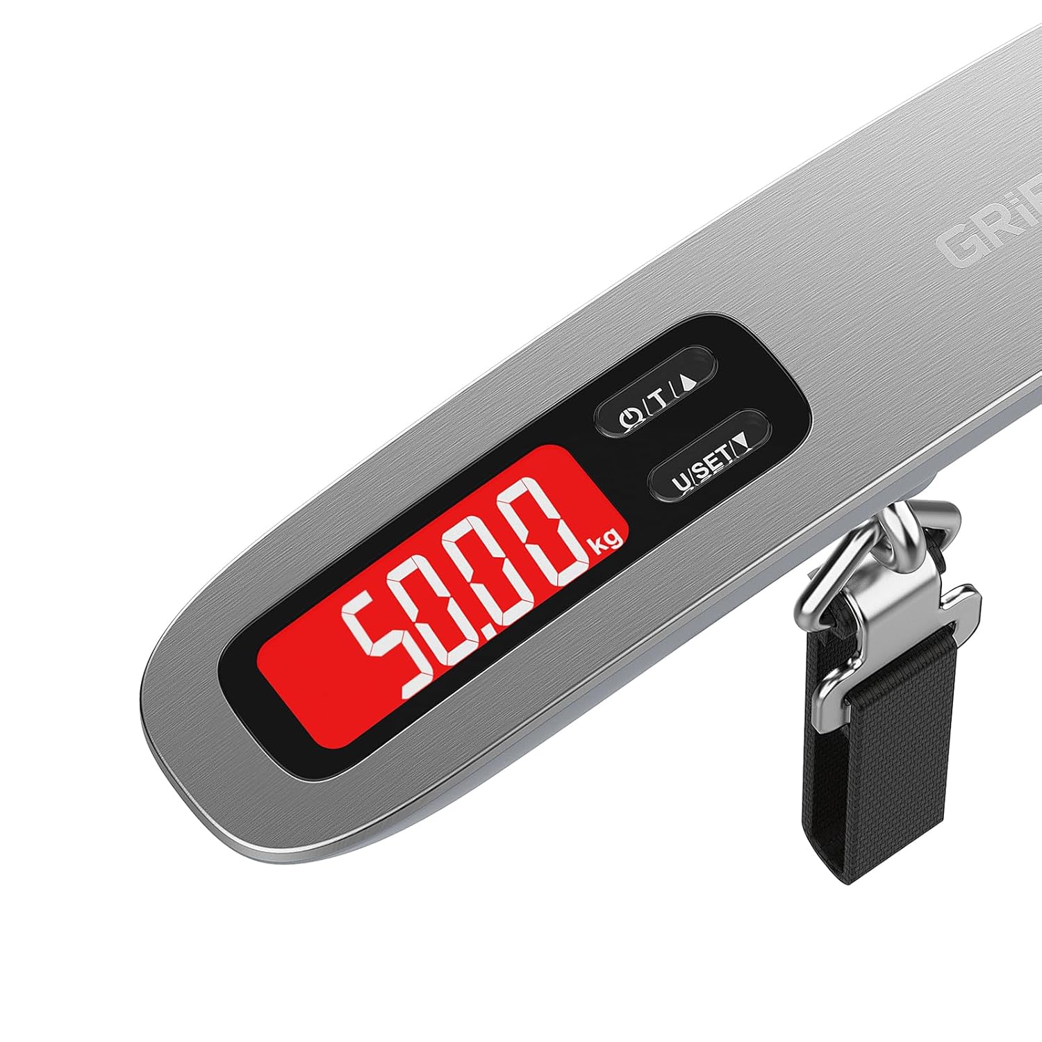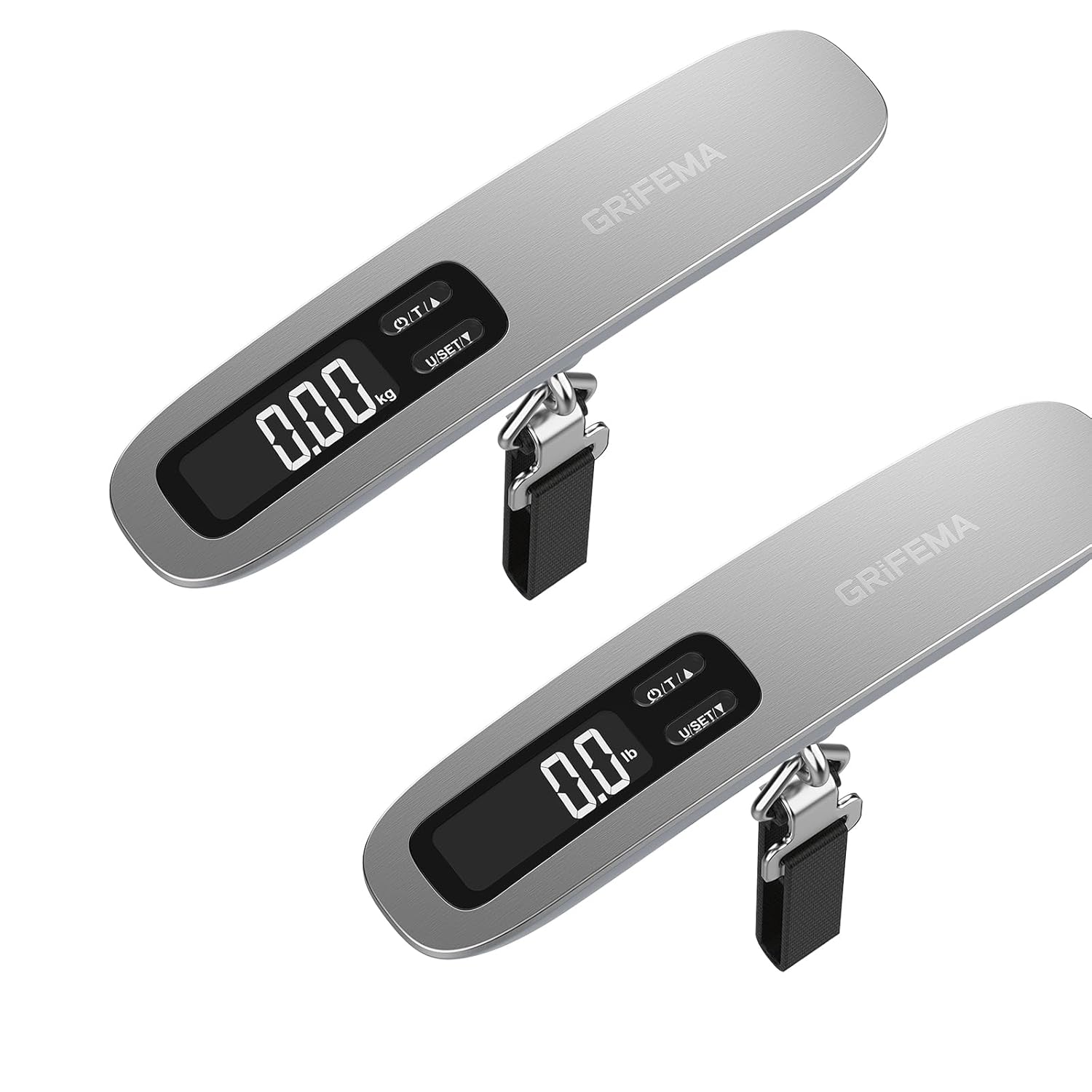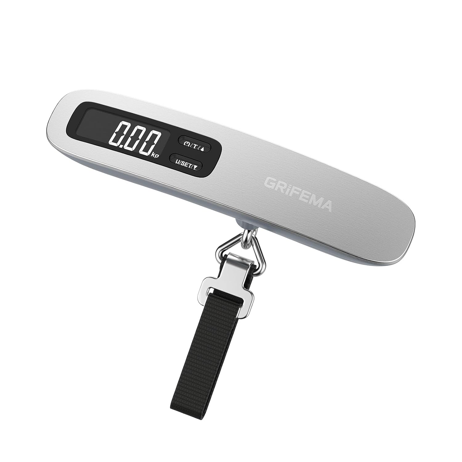 GRIFEMA GA2006 Báscula Maletas Viaje Portátil, Báscula de Equipaje con Pantalla LCD, Hasta 110 lb/50 kg, para Viajes al Aire Libre, Plata