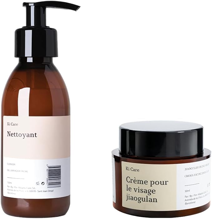 Paquete de Rutina Facial: Crema Hidratante Facial con Jiaogulan Nutriente y Calmante y Gel Limpiador Facial Ligero Sin Sulfatos y con Adaptógenos. – Ki Care